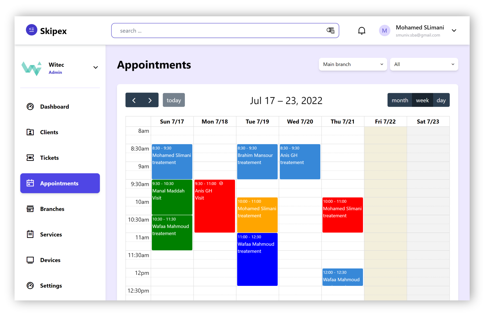 - color coding of appointments either by service or by urgency or Others…