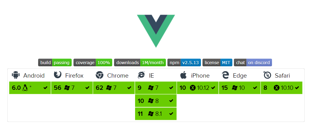 We are using Vuejs 3 for the front end and it’s supported by all the major browsers and platforms